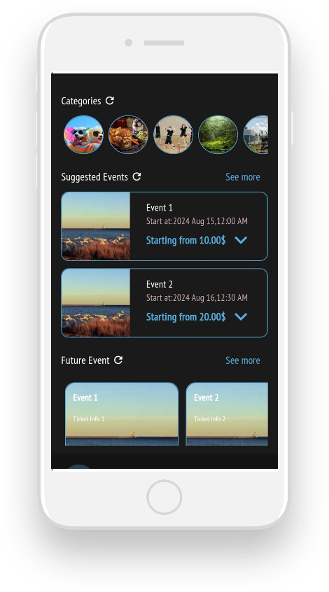For business owners, our app provides powerful tools to manage all aspects of your events, from ticketing to participant tracking. Regular users can easily register for events and keep track of upcoming ones.
